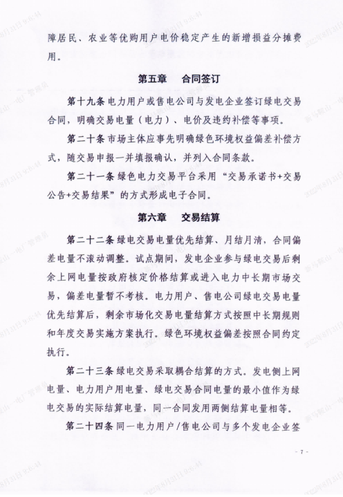 電能量交易價格按照電力中長期交易價格執(zhí)行,即按照“基準(zhǔn)價格+上下浮動”形成,上下浮動范圍不超過 20%;綠色環(huán)境權(quán)益價格不設(shè)上限。