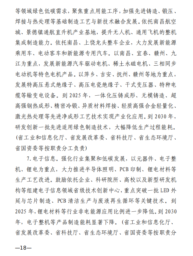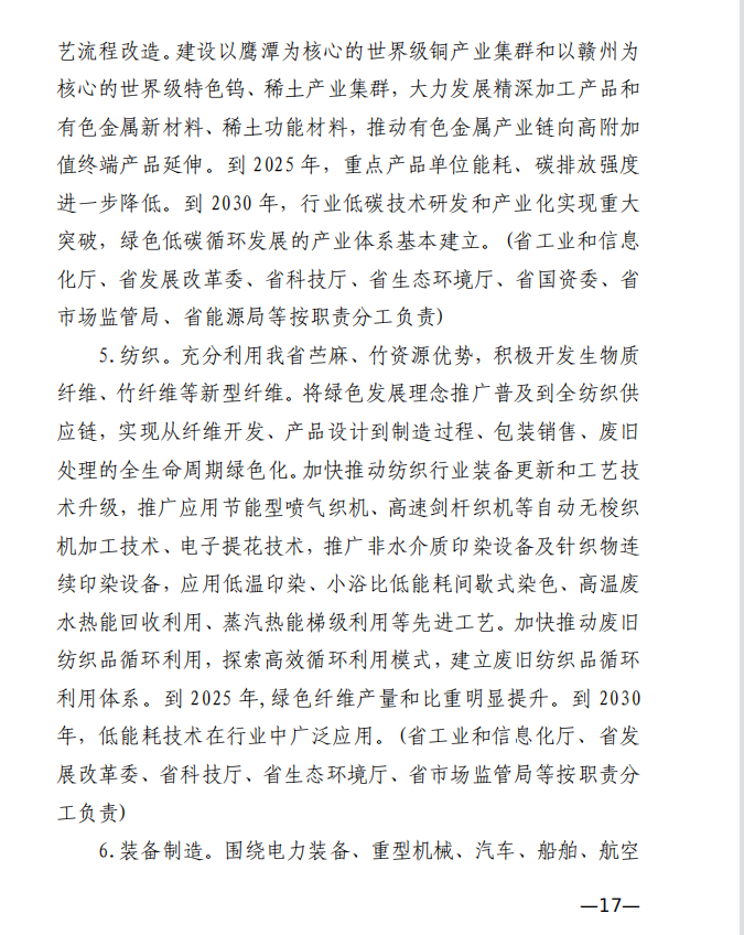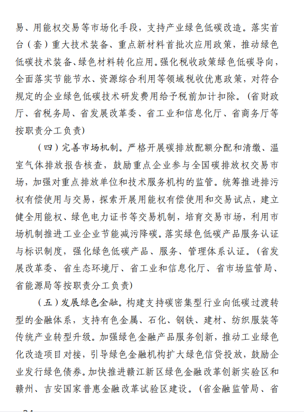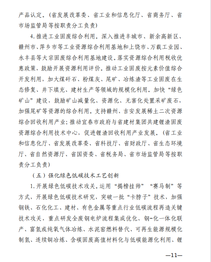 10月10日,江西省工業和信息化廳、江西省發展和改革委員會和江西省生態環境廳發布《關于印發江西省工業領域碳達峰實施方案的通知》,《江西省工業領域碳達峰實施方案》提出,“十四五”期間,江西力爭產業結構與用能結構優化取得積極進展,能源資源利用效率明顯提升,綠色工廠和綠色園區分別達到200家和50家;到2025年,全省規模以上工業單位增加值能耗較2020年下降12%以上。“十五五”期間,力爭一批重點產品工藝能效達到國內領先水平,基本建立以高效、綠色、循環、低碳為特征的現代工業體系;確保工業領域二氧化碳排放在2030年前達峰。