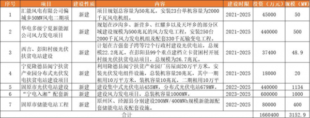 近期,固原市人民政府辦公室印發固原市自然資源保護和利用“十四五”規劃的通知。根據光伏們查詢,在固原市自然資源保護和利用“十四五”規劃建設項目庫中,有關清潔能源產業的項目共10個。其中包括光伏、風電、儲能的項目共7個,合計新能源新建規模3152.9MW,總投資金額166億元。具體項目名單如下: