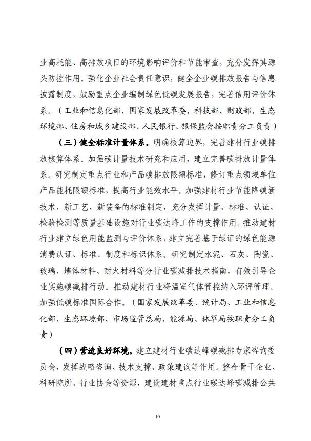 四部門關于印發建材行業碳達峰實施方案的通知