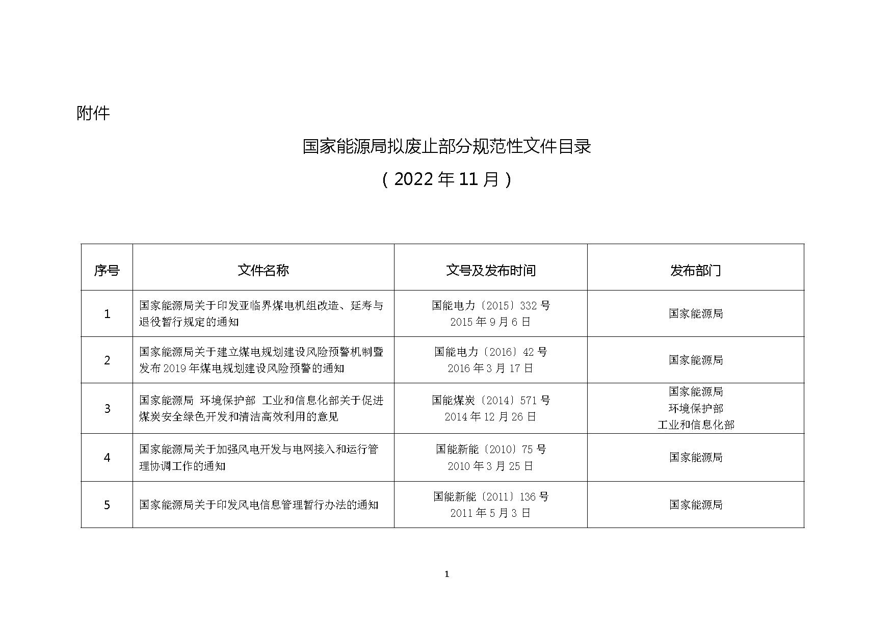 附件:國(guó)家能源局?jǐn)M廢止部分規(guī)范性文件目錄