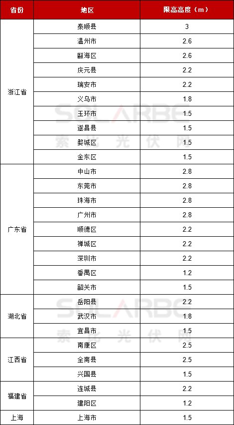 例如,為保障項目安全,浙江、廣東、湖北、江西、上海等地區對光伏在屋頂安裝的高度,做出了明確的規定。