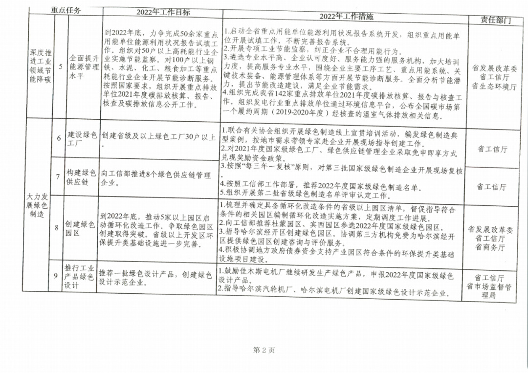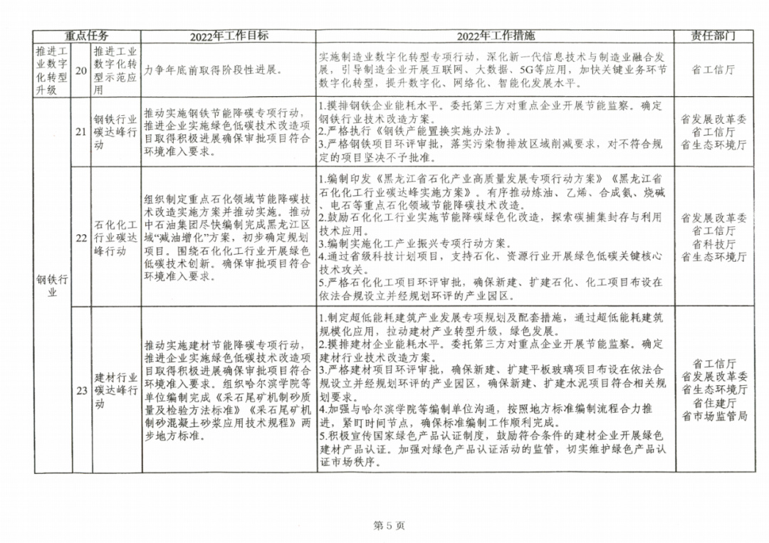 附件:《黑龍江省工業(yè)領(lǐng)域碳達(dá)峰實(shí)施方案》2022年工作計(jì)劃臺(tái)賬