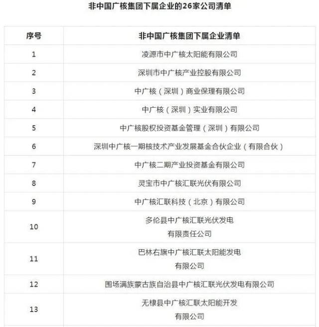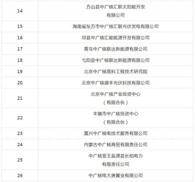 去年4月,中廣核集團發布“關于與相關企業不存在股權關系的嚴正聲明”。聲明顯示,凌源市中廣核太陽能有限公司、深圳市中廣核產業控股有限公司、嘉興中廣核電技術服務有限公司等26家公司在企業名稱中使用“中廣核”字樣。鑒于該26家公司并非中廣核下屬企業,中廣核鄭重澄清并嚴正聲明如下:中廣核未擁有下述26家公司的任何資產或股權,亦無隸屬或管理關系,并未授權下述公司使用“中廣核”商標和字號,若因下述公司的經營行為導致法律、勞務糾紛或其他相關責任,均與中廣核無關。