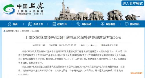 記者獲悉,6月6日,浙江省紹興市上虞區(qū)家庭屋頂光伏項(xiàng)目發(fā)電量區(qū)級(jí)補(bǔ)貼兌現(xiàn)建議方案公示。