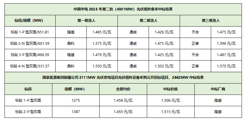 當項目落地不再受制于組件價格,終端發電企業將更關注資產安全伴生的穩定收益,“低價”已不是它們關注的主要判斷因素。近期中國華電2023年4081MW光伏組件集采、國家能源集團新疆公司2111MW光伏發電項目組件設備采購招標結果印證了這種趨勢。