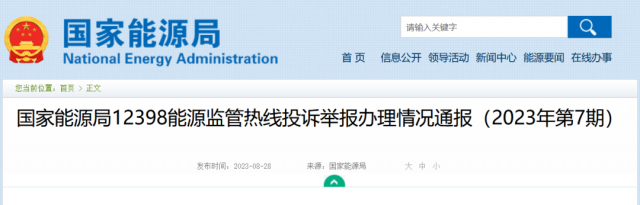 國家能源局12398能源監(jiān)管熱線投訴舉報辦理情況通報