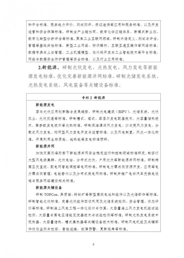 在新能源方面:研制光伏發(fā)電、光熱發(fā)電、風(fēng)力發(fā)電等新能源發(fā)電標準,優(yōu)化完善新能源并網(wǎng)標準,研制光儲發(fā)電系統(tǒng)光熱發(fā)電系統(tǒng)、風(fēng)電裝備等關(guān)鍵設(shè)備標準。