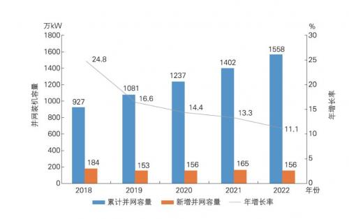 2018-2022年可再生能源裝機容量及年增長率變化對比