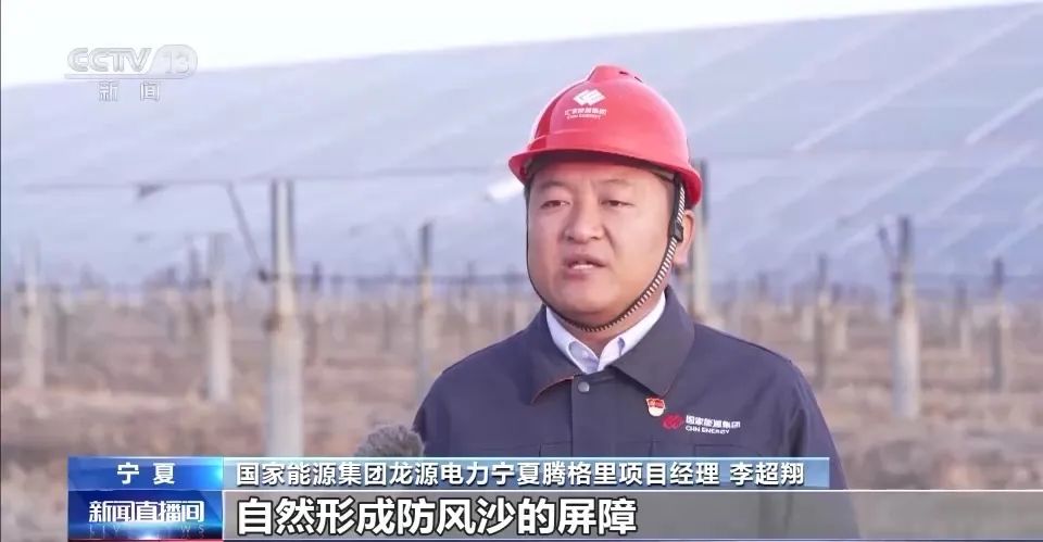 國家能源集團(tuán)龍源電力寧夏騰格里項(xiàng)目經(jīng)理 李超翔:我們通過建設(shè)光伏陣列自然形成防風(fēng)沙的屏障,并采用在地表扎草方格,實(shí)現(xiàn)防沙、固沙、治沙。在一期光伏項(xiàng)目2.8萬畝占地面積中,治沙范圍已超過2.6萬畝。