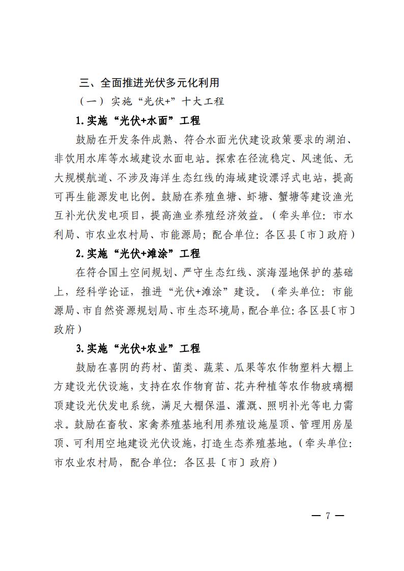 同時還提到全面推進光伏多元化利用:實施“光伏+”十大工程,大力推進整縣(市、區)分布式光伏開發,開展光伏資源排查等。