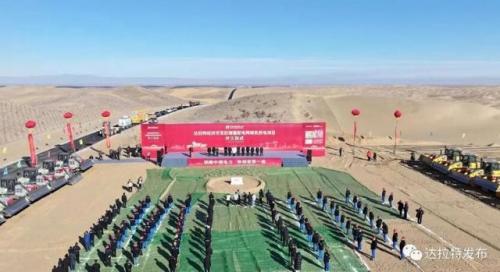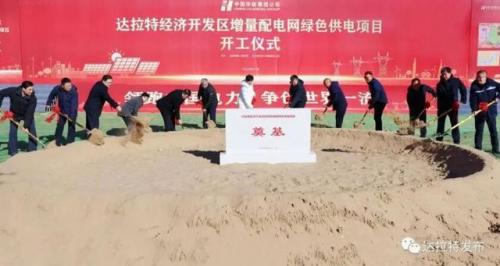 儀式上,與會人員共同為達拉特經濟開發區增量配電網綠色供電項目奠基培土。