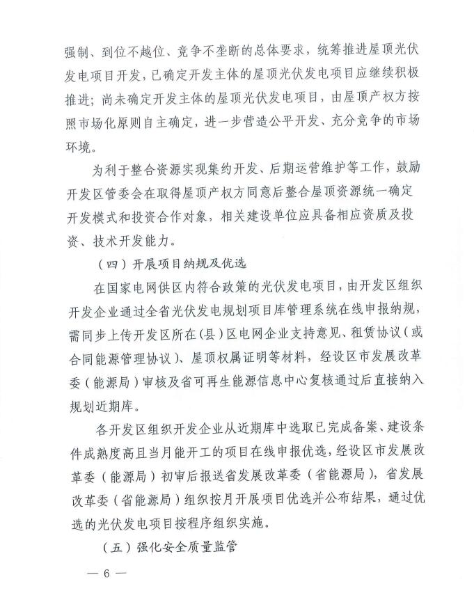 為深入貫徹碳達(dá)峰、碳中和重大戰(zhàn)略決策,加快發(fā)展可再生能源,實(shí)施可再生能源替代行動,提升我省開發(fā)區(qū)能源自供給能力,我委編制了《江西省整體推進(jìn)開發(fā)區(qū)屋頂光伏建設(shè)三年行動計劃( 2022-2024年)》,經(jīng)委主任辦公會審議通過后印發(fā)給你們,請認(rèn)真貫徹執(zhí)行。各設(shè)區(qū)市發(fā)展改革委(能源局)于3月10日前將轄區(qū)內(nèi)各省級以上開發(fā)區(qū)開發(fā)方案報送我委。