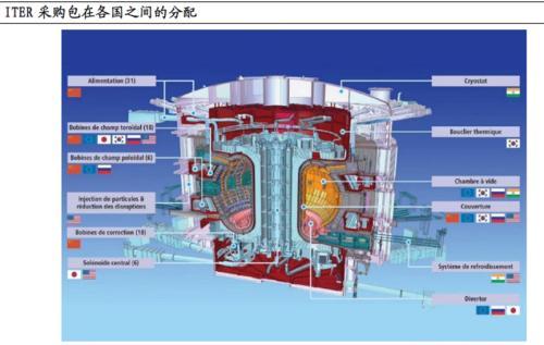 目前ITER主導下的國內可控核聚變托卡馬克產業鏈:主要集中于主體部分,包括磁體系統、包層模塊、偏濾器、面向等離子體材料(包層第一壁、偏濾器靶板材料)、增殖單元材料(中子倍增劑)等環節。