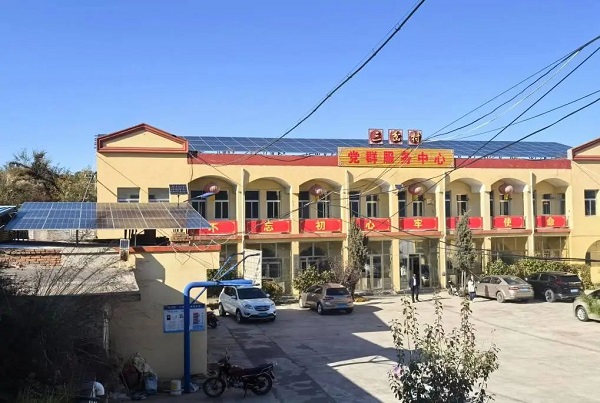 正值午時,秋高氣爽。在山西省忻州市五寨縣三岔鎮三岔村黨群服務中心的大院里,一排排深藍色的光伏板依序排列于四周屋頂,在陽光的照耀下熠熠生輝,格外引人注目。