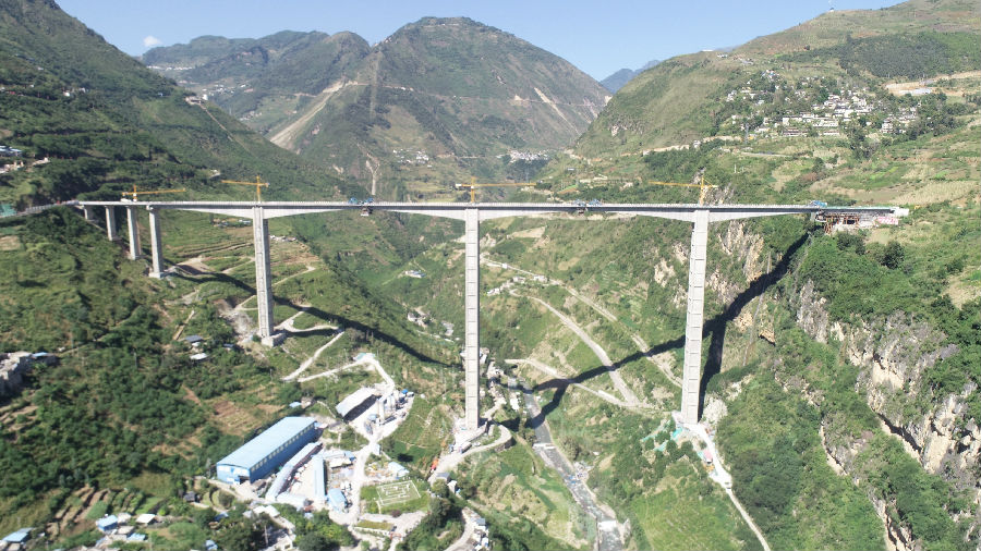 國慶期間,具有“世界第一高鋼管混凝土格構空心橋墩”的金陽河特大橋順利合龍,該橋計劃于本年度12月建成通車。