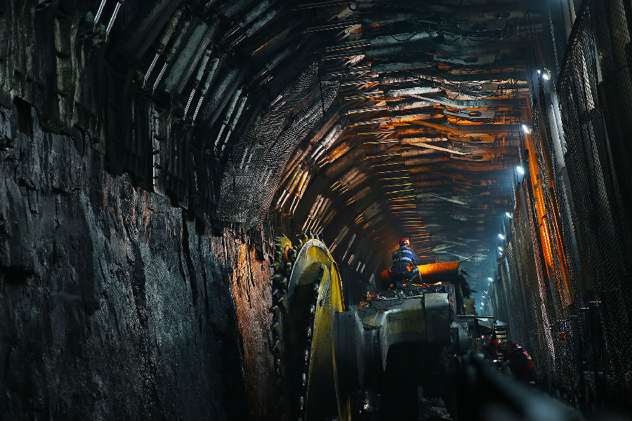 圖為國家能源集團神東上灣煤礦8.8米超大采高智能綜采工作面生產現場