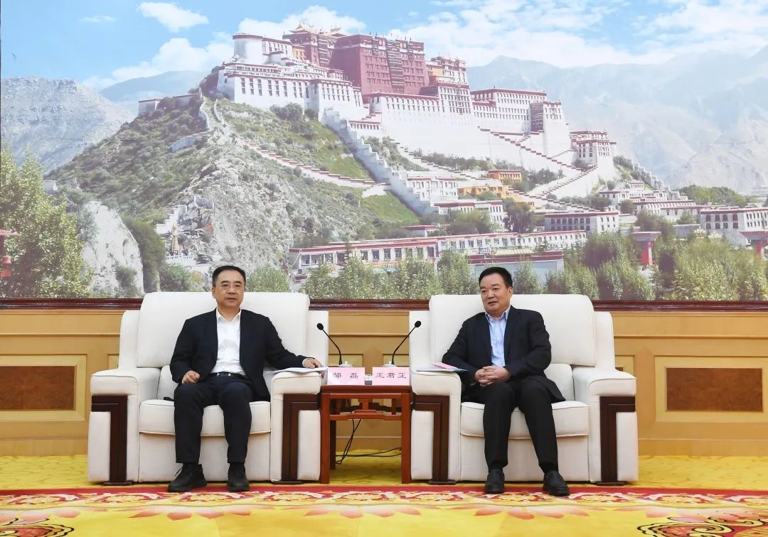 6月8日,中國大唐集團有限公司黨組書記、董事長鄒磊在拉薩拜會了西藏自治區黨委書記王君正,自治區黨委副書記、自治區政府主席嚴金海,雙方圍繞深化央地戰略合作關系、共同推進國家清潔能源基地建設、助力西藏高質量發展進行深入交流。