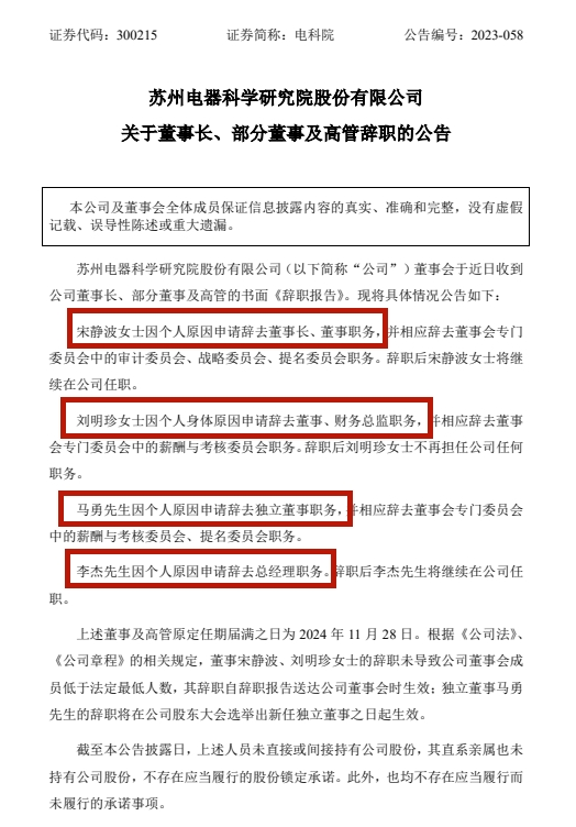 在父子“內(nèi)斗”形勢明朗,父親胡德霖去世,胡醇及其母成為公司實(shí)際控制人之后,電科院9月1日晚間發(fā)布公告,包括董事長、總經(jīng)理、財(cái)務(wù)總監(jiān)在內(nèi),多人宣布辭職。
