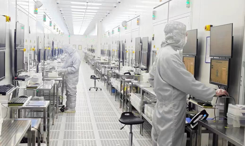 戴好口罩、套上鞋套、穿好潔凈服……走進電科芯片超凈車間,操作人員小心翼翼地將待檢測芯片放置到探針載臺上,配合電子顯微鏡,進行良品率自動檢測。