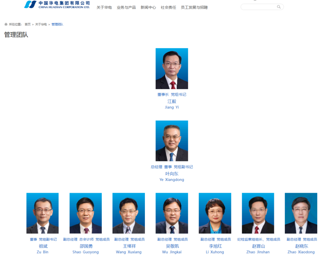 日前,中國華電官網“管理團隊”一欄更新顯示:趙曉東任中國華電集團有限公司副總經理、黨組成員。