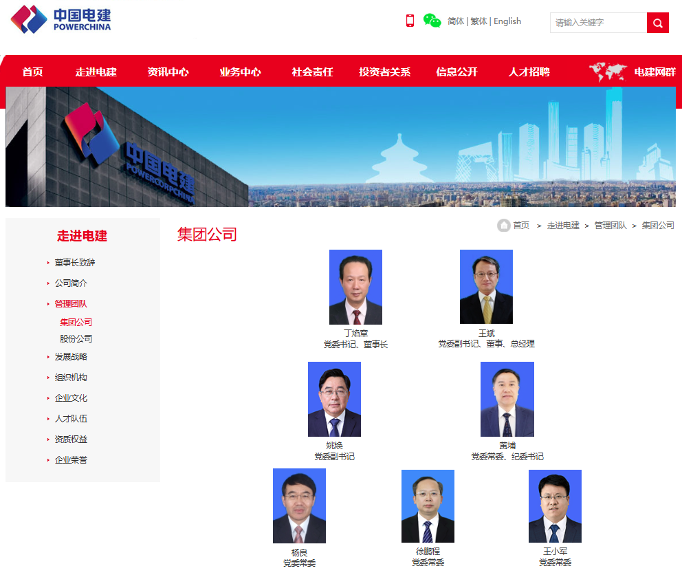 日前,中國電建官網管理團隊更新內容,姚煥已擔任中國電建黨委副書記職務。
