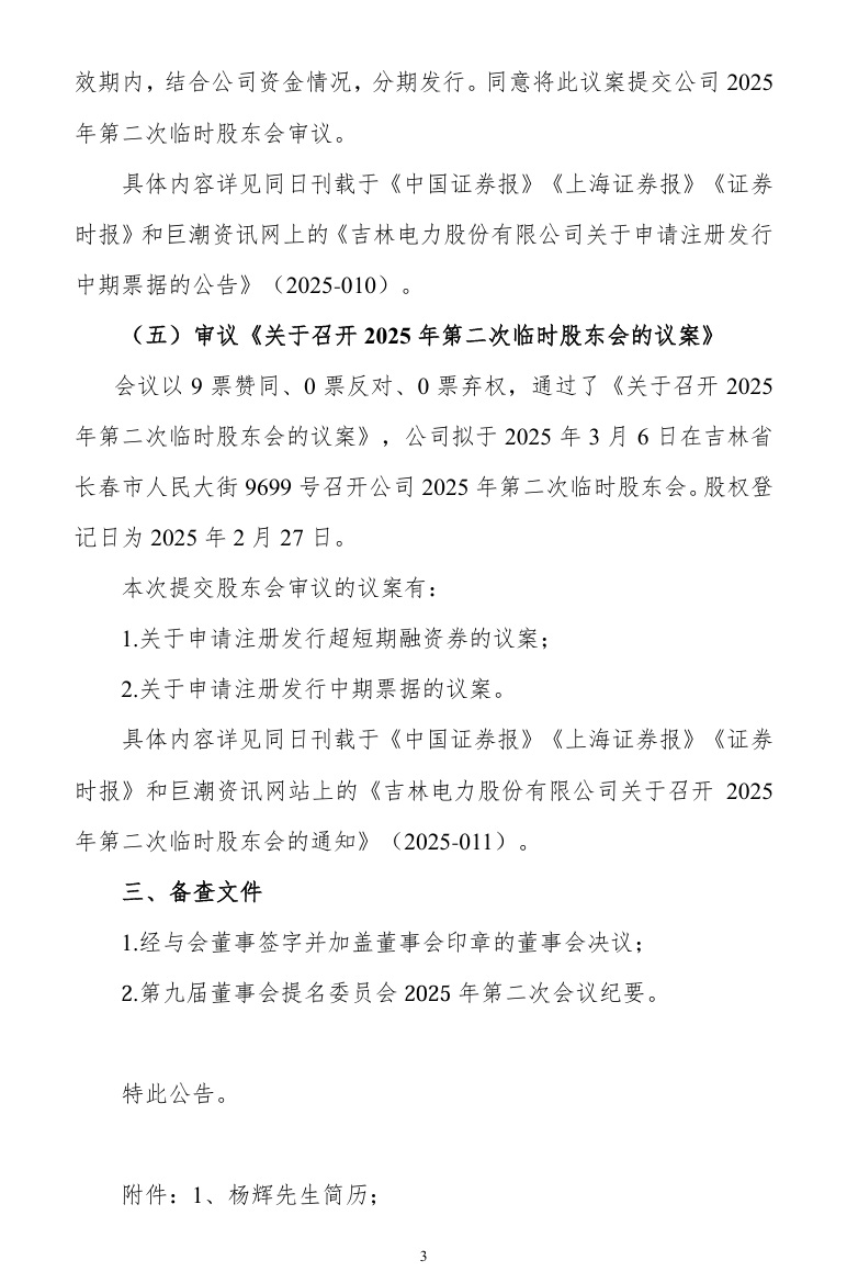 2月18日,吉電股份發布公告稱,公司第九屆董事會第三十次會議審議通過了《關于聘任楊輝先生為公司副總經理的議案》,同意聘任楊輝先生為公司副總經理。