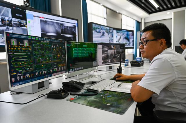 7月8日,在大唐龍王溝煤礦,工作人員在操作智慧調度系統。
