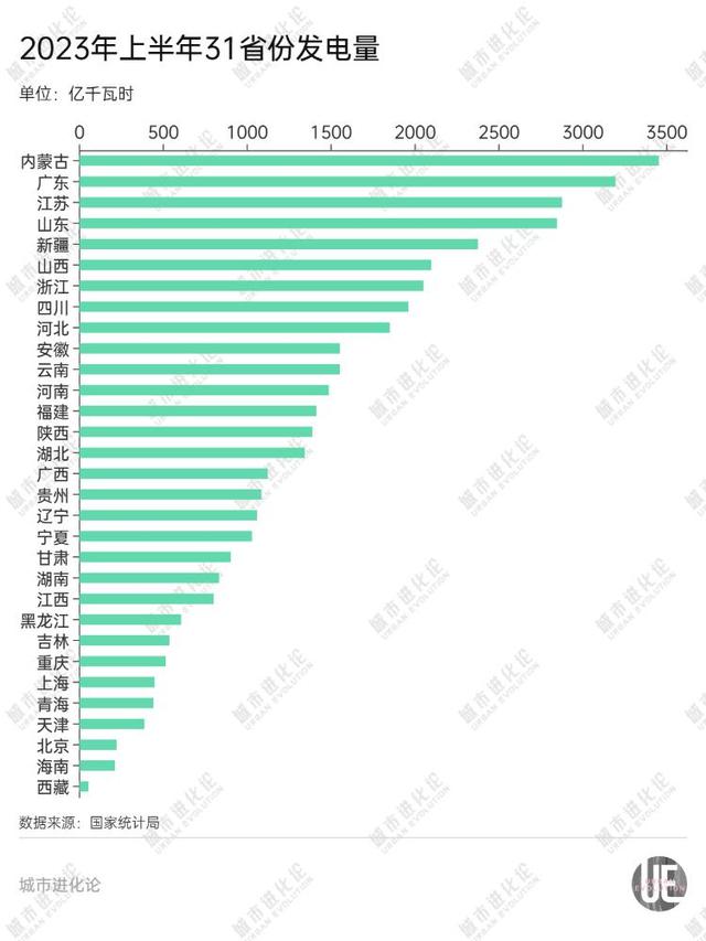 在內(nèi)蒙古之外,山西、新疆、云南上半年富余電量均在400億千瓦時以上,寧夏、貴州、四川、陜西也超過200億千瓦時,都是“西電東送”的重要力量,也是電力“缺口”大省的強大“外援”。