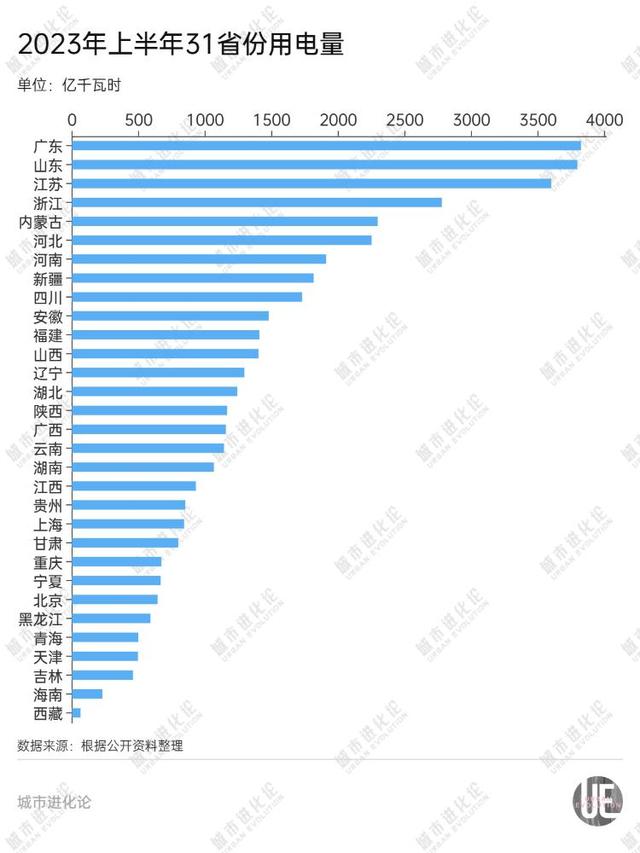 廣東、山東、江蘇全社會用電量在3000億千瓦時階段“三雄相爭”,浙江、內(nèi)蒙古和河北競速2000億千瓦時階段,而剩下的河南、新疆等12個全社會用電量達到千億千瓦時的省份,只能爭奪剩下的4個席位。