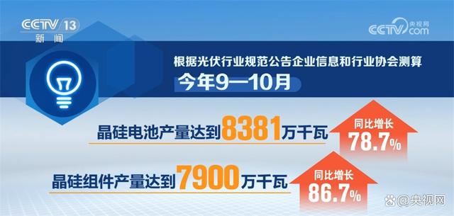 央視網(wǎng)消息:工業(yè)和信息化部12月13日發(fā)布當(dāng)前全國光伏制造行業(yè)最新運(yùn)行情況。數(shù)據(jù)顯示,今年9—10月,我國光伏制造業(yè)保持高位運(yùn)行,硅料、硅片、電池、組件產(chǎn)量同比增長(zhǎng)均超60%。