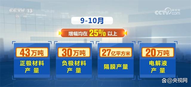 據(jù)了解,今年以來,我國鋰電池生產(chǎn)各環(huán)節(jié)均保持高位增長(zhǎng)。9—10月,正極材料、負(fù)極材料、隔膜、電解液產(chǎn)量分別達(dá)到43萬噸、30萬噸、27億平方米、20萬噸,增幅均在25%以上。