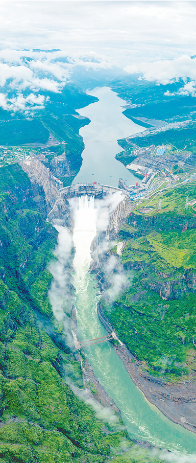 白鶴灘水電站是黨的十八大以來我國開工建設(shè)的世界在建最大水電工程,建成后將僅次于三峽電站,排名世界第二。2021年6月28日首批機組投產(chǎn)發(fā)電,總裝機容量1600萬千瓦,年均發(fā)電量624.43億千瓦時。