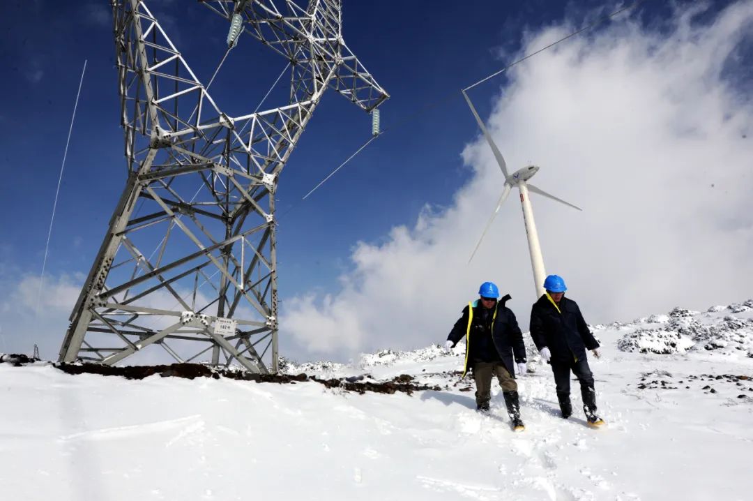 南方電網用“一張表”推進各個治理主體履職盡責。圖為南網貴州六盤水供電局員工在海拔2500多米的六盤水市四格風電場巡視檢查風力發電輸出線路。(李泵 攝)