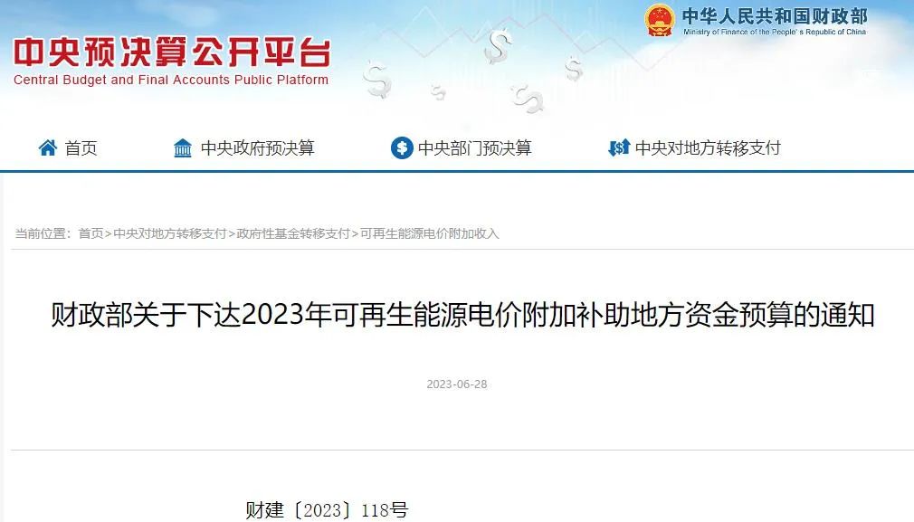 6月28日,財(cái)政部發(fā)布《關(guān)于下達(dá)2023年可再生能源電價(jià)附加補(bǔ)助地方資金預(yù)算的通知》(簡(jiǎn)稱(chēng)《通知》)。