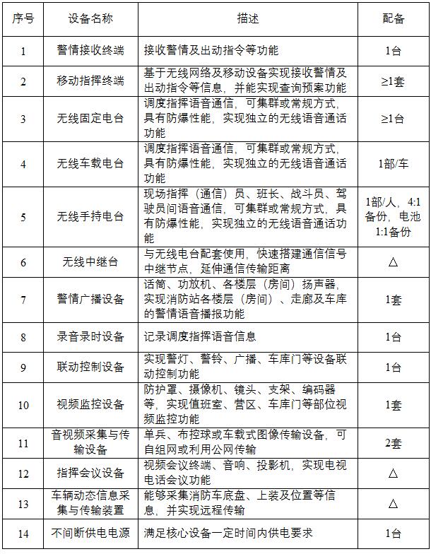 2. 核電廠消防站通信指揮系統(tǒng)設(shè)備配備要求