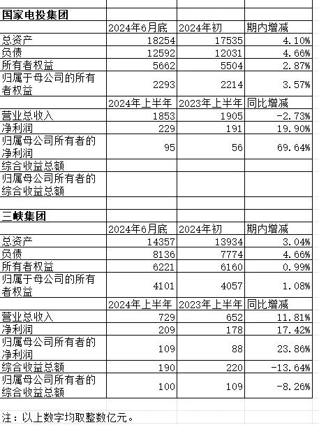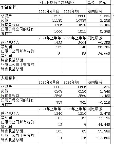 請注意,上述數據反映了六大發電集團在2024年上半年與2023年同期相比的變化情況。這些數字有助于了解企業在經濟活動中的表現趨勢。
