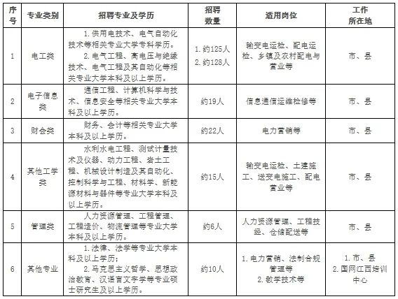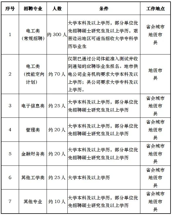 電?類、計算機、通信、???程、???程(輸電?程)、財會等專業,招聘?學本科及以上學歷畢業?。