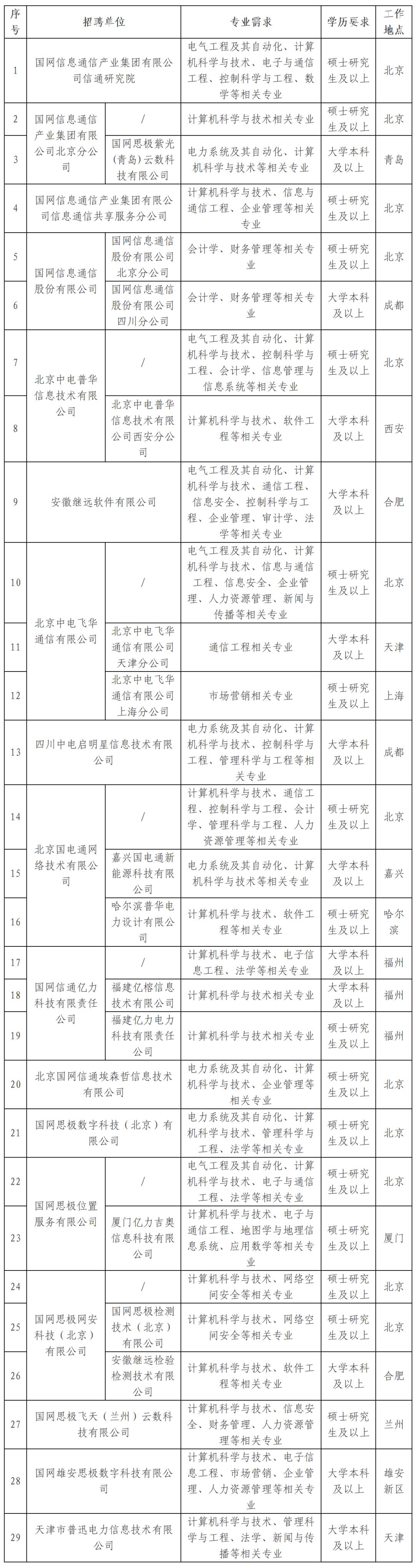公司下屬單位列表及簡介詳見公司人力資源招聘平臺(網址:https://zhaopin.sgcc.com.cn)“單位一覽”欄目。