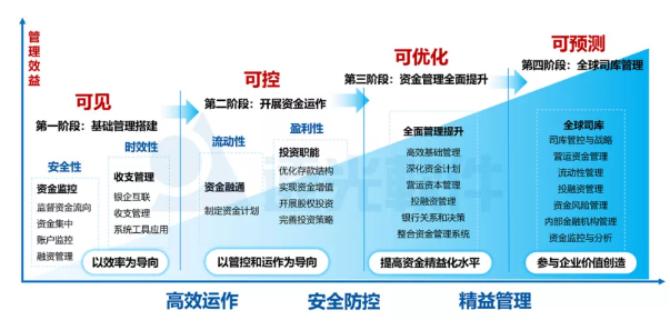 司庫管理注重強化營運資金、流動性、資本結構、利率匯率風險和融資的管控,通過司庫體系建設,企業可將資金被動管理轉變為主動管理、超前管理,實現集團各類金融資源可視、可控和增值,成為集團戰略落地的堅實保障。