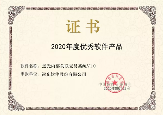 近日,由中國軟件行業協會舉辦的2020年度軟件產品推優評選活動公布了獲獎名單,遠光軟件“內部關聯交易系統 V1.0”憑借其在創新性和實用性方面的獨特優勢,榮獲“2020年度優秀軟件產品”。