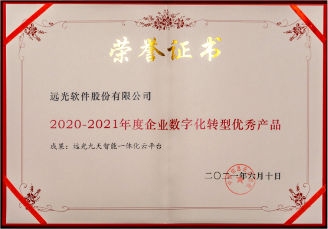 憑借強大的技術能力、協同創(chuàng)新能力和潛在應用價值,遠光九天平臺獲得了大會組委、活動評審和眾多企業(yè)、客戶的一致認可,獲選“2020-2021年度企業(yè)數字化轉型優(yōu)秀產品”。