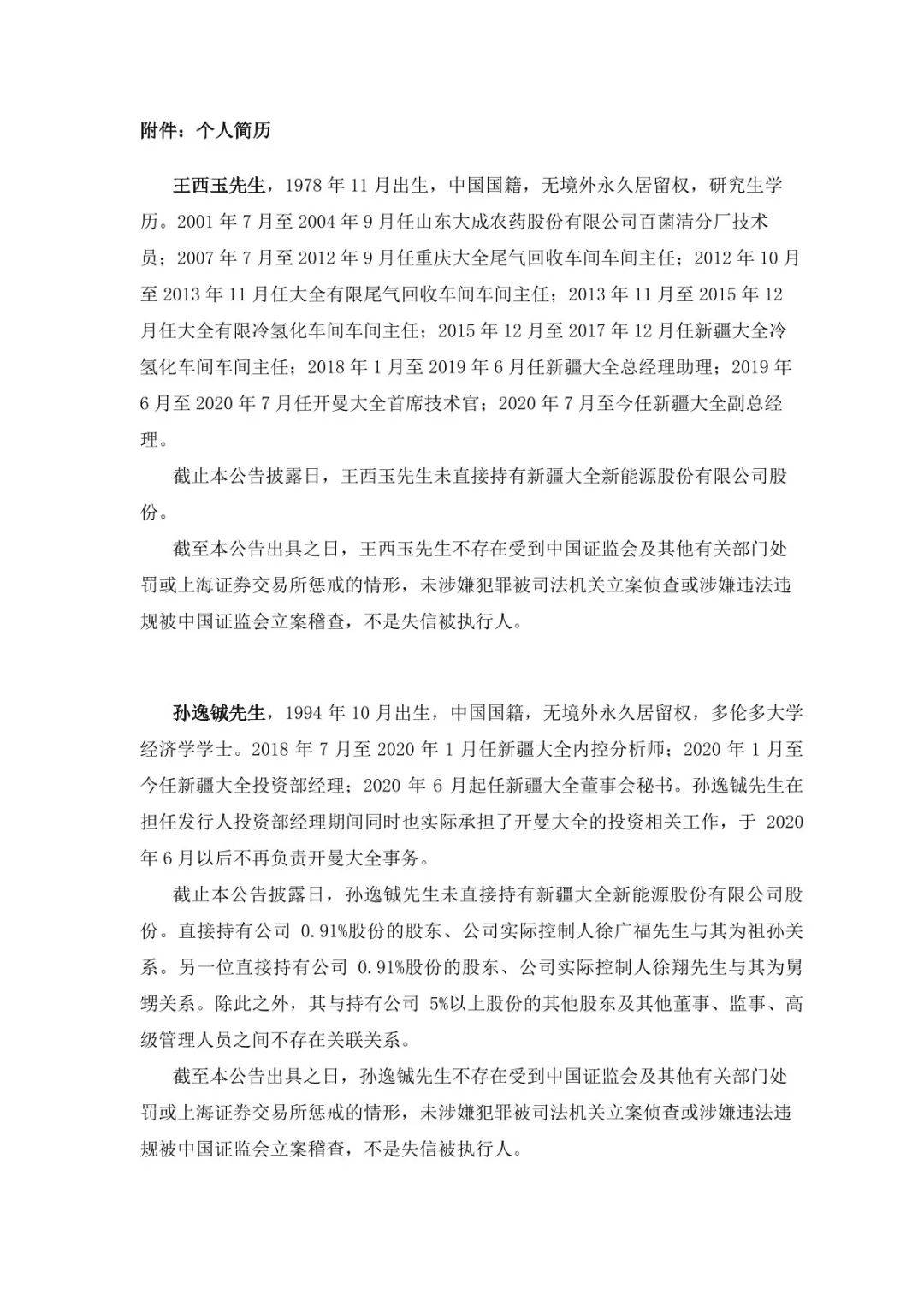 新疆大全新能源股份有限公司(以下簡稱“大全能源”)董事張龍根、董事兼總經理周強民辭職。