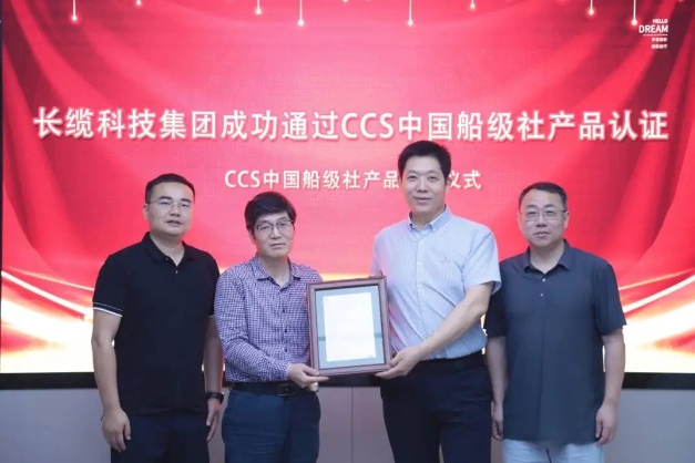 經過前期嚴格的質量檢驗與評估,長纜科技首套產品成功通過了中國船級社(CCS)檢驗。2024年6月7日,中國船級社(CCS)武漢分社長沙檢驗處向長纜科技頒發產品檢驗證書。