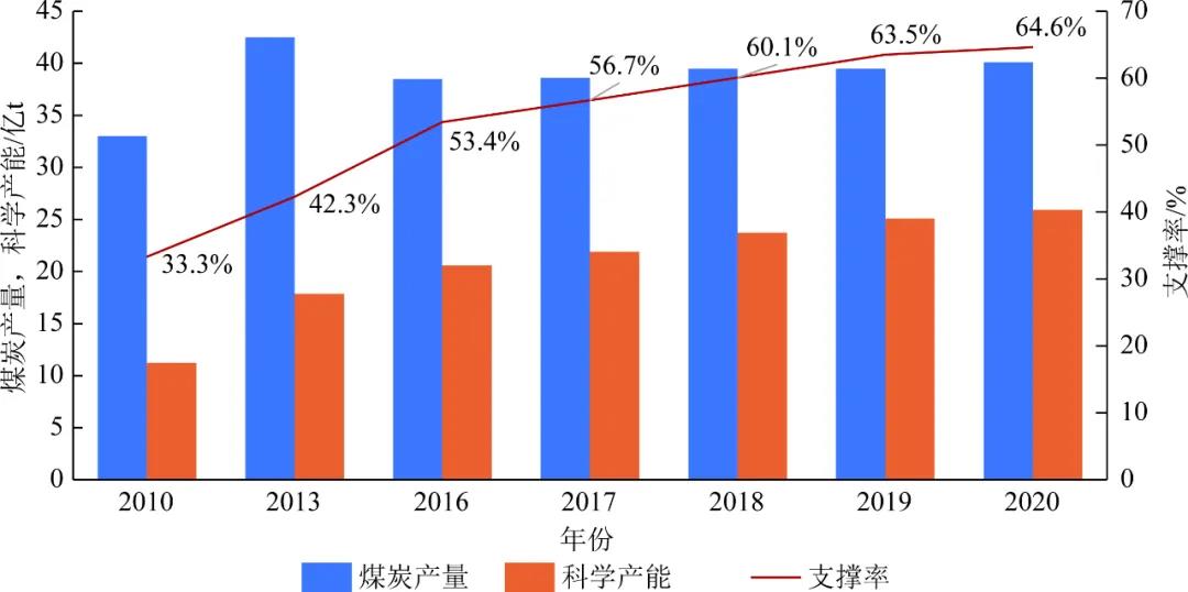 ▲科學產能對煤炭產量的支撐能力變化