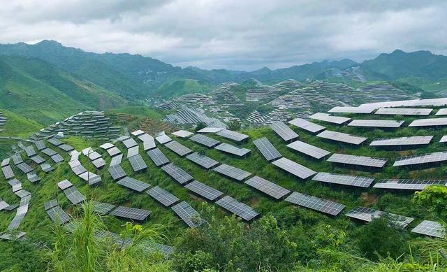俯瞰黔中大地,不計其數(shù)的光伏板沿著山勢鋪滿了千溝萬壑,在陽光下匯成“藍色海洋”;一座座大型風力發(fā)電機矗立山巔,巨大的葉片隨風而舞,向電網(wǎng)源源不斷輸送綠電。