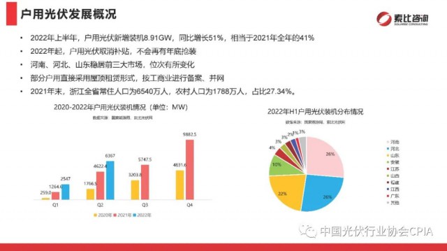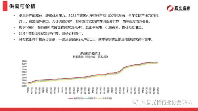 2022年9月27日,在中國光伏行業(yè)協(xié)會的指導和國內(nèi)領(lǐng)先的分布式戶用企業(yè)支持下,由索比光伏網(wǎng)主辦的“2022年中國戶用光伏品牌大會暨中東部省份分布式項目開發(fā)研討會”在浙江寧波召開。索比光伏網(wǎng)副主編尹也澤對光伏供應鏈與分布式應用市場進行了回顧展望。尹也澤副主編分析,整體看,今年全年全國光伏發(fā)電新增裝機有望超過90GW,其中分布式光伏仍將占據(jù)“半壁江山”。
