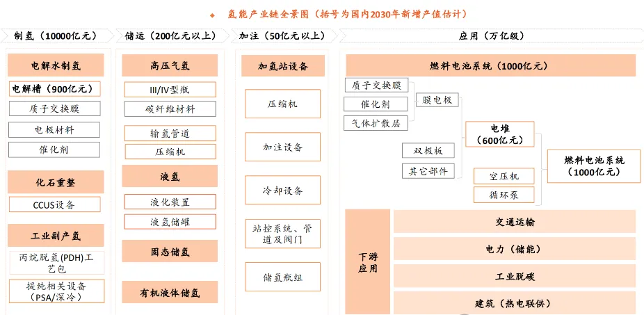 氫能產(chǎn)業(yè)中游主要包括儲運(yùn)氫和加氫站建設(shè)。儲運(yùn)氫環(huán)節(jié),主要有高壓氣態(tài)儲氫、低溫液態(tài)儲氫、固體儲氫和有機(jī)液體儲氫等方式。當(dāng)前,美國、歐洲已分別建成2600km、1500km的氫管道,而我國氫氣管道里程約400km,在用管道僅有百公里左右。儲運(yùn)氫環(huán)節(jié)成為我國氫能產(chǎn)業(yè)亟待攻克的環(huán)節(jié)。