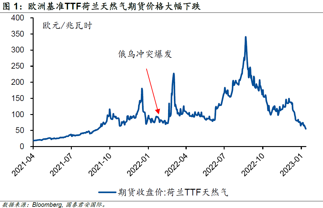 時至今日,俄烏沖突已經持續將近一年的時間,原本歐洲主要的天然氣輸送管道“北溪”亦停運超過4個月。在全球新增天然氣供應量有限及寒冬的預期下,歐洲基準TTF荷蘭天然氣期貨價格一度飆升至接近340歐元/兆瓦時,為俄烏沖突爆發時的4倍左右。飆升的天然氣價格也成為了本輪全球范圍通脹走高的重要因素。