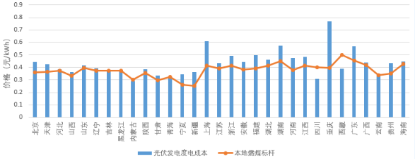 圖2 光伏發電度電成本與燃煤標桿電價對比